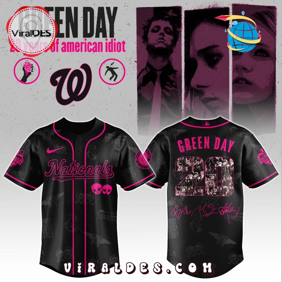 Washington Nationals MLB x Green Day 20th Anniversary Baseball Jersey Information: