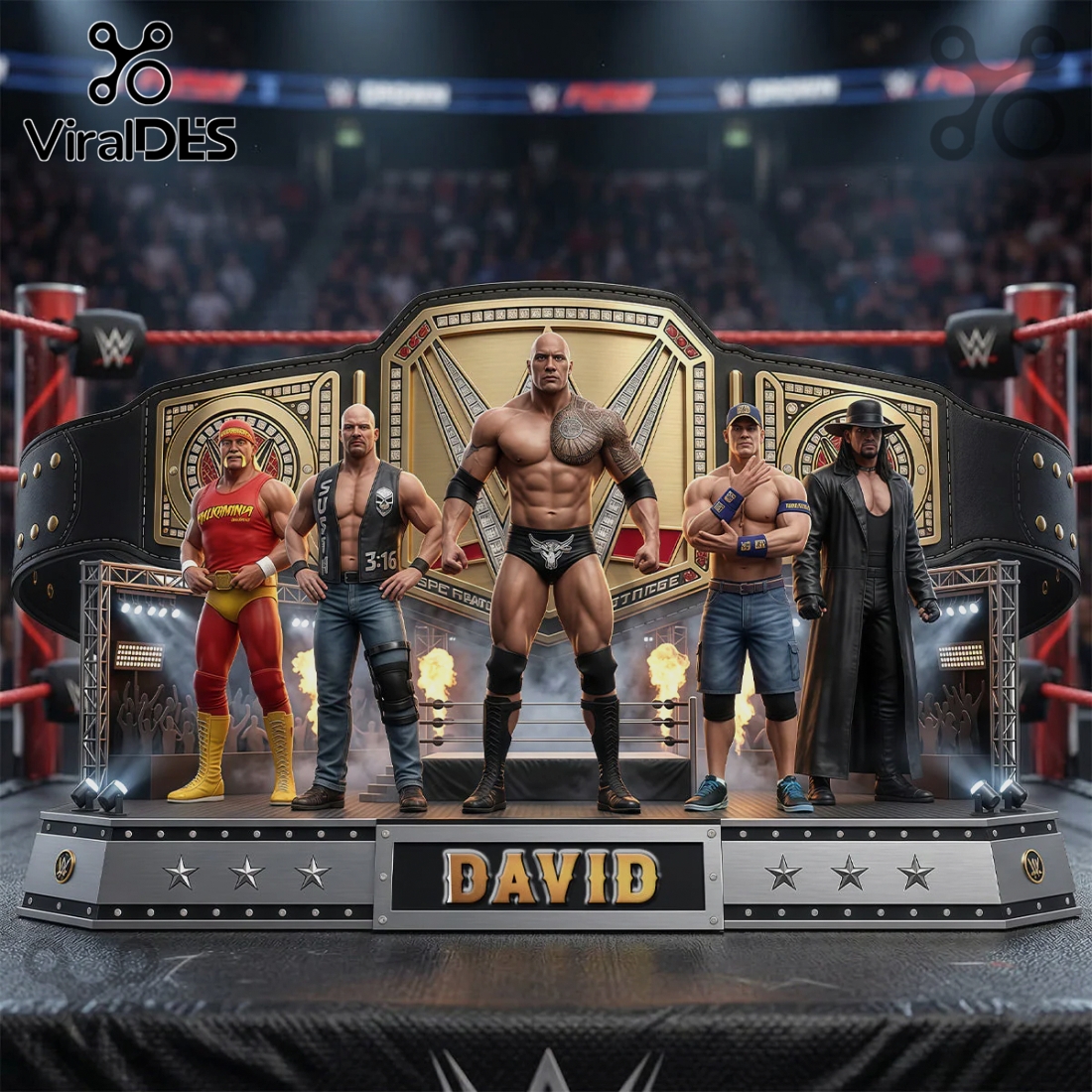 Get ready for the main event! This personalized WWE Legends Arena Display is for every die-hard wrestling fan who lives for the roar of the crowd and epic championship moments.