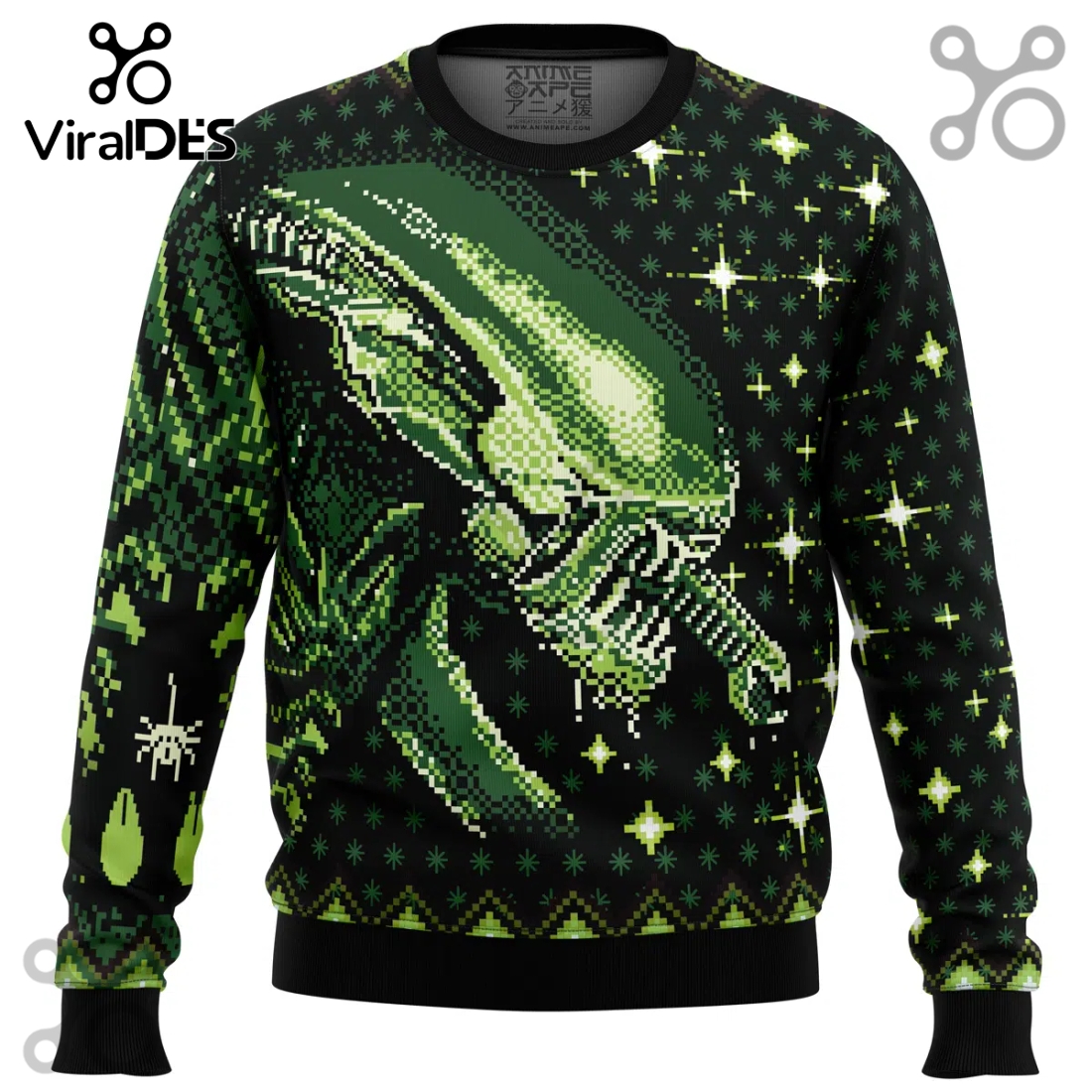 Its design is where the Xenomorph Alien Ugly Sweater 2025 truly shines, weaving recognizable elements from the beloved sci-fi horror saga into a vibrant tapestry of holiday cheer gone gloriously awry. Imagine a landscape where the familiar silhouette of a fully grown Xenomorph queen replaces the star atop a snow-dusted Christmas tree, or where miniature facehuggers, complete with their creepy, arachnoid limbs, are cleverly disguised as mistletoe sprigs. Instead of quaint reindeer, the sweater might feature stylized chestbursters comically emerging from wrapped presents, their toothy grins peeking from behind festive bows, trailing a subtle, metallic green “acid blood” shimmer that mimics tinsel. The traditional geometric patterns often found on holiday sweaters are reinterpreted with subtle biomechanical textures, reflecting the creature’s chitinous form, while snowflakes morph into the distinct, elongated head shape of the Xenomorph drone. Color-wise, the designers have masterfully balanced the dark, foreboding palette of deep space – charcoal greys, midnight blues, and stark blacks – with unexpected pops of holiday reds and greens, along with sickly yellows and phosphorescent greens for a truly alien glow, ensuring it stands out while still feeling appropriate for winter celebrations. The year “2025” is subtly integrated into a pattern, perhaps alongside a Weyland-Yutani corporate logo stylized to resemble a holiday ornament, marking this as a distinct, contemporary release.
